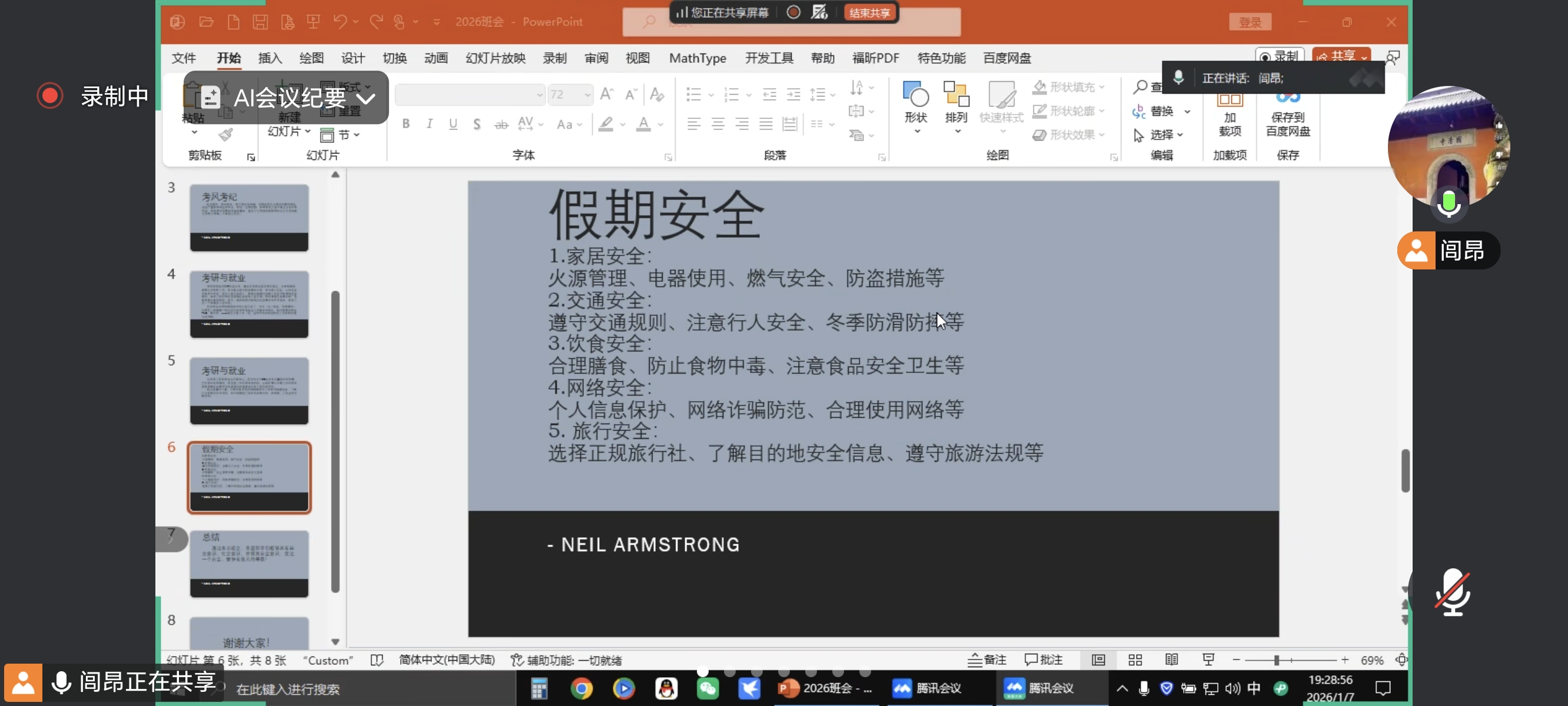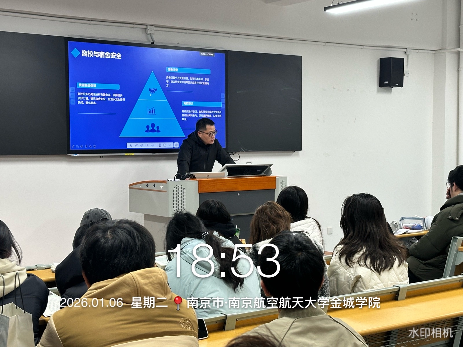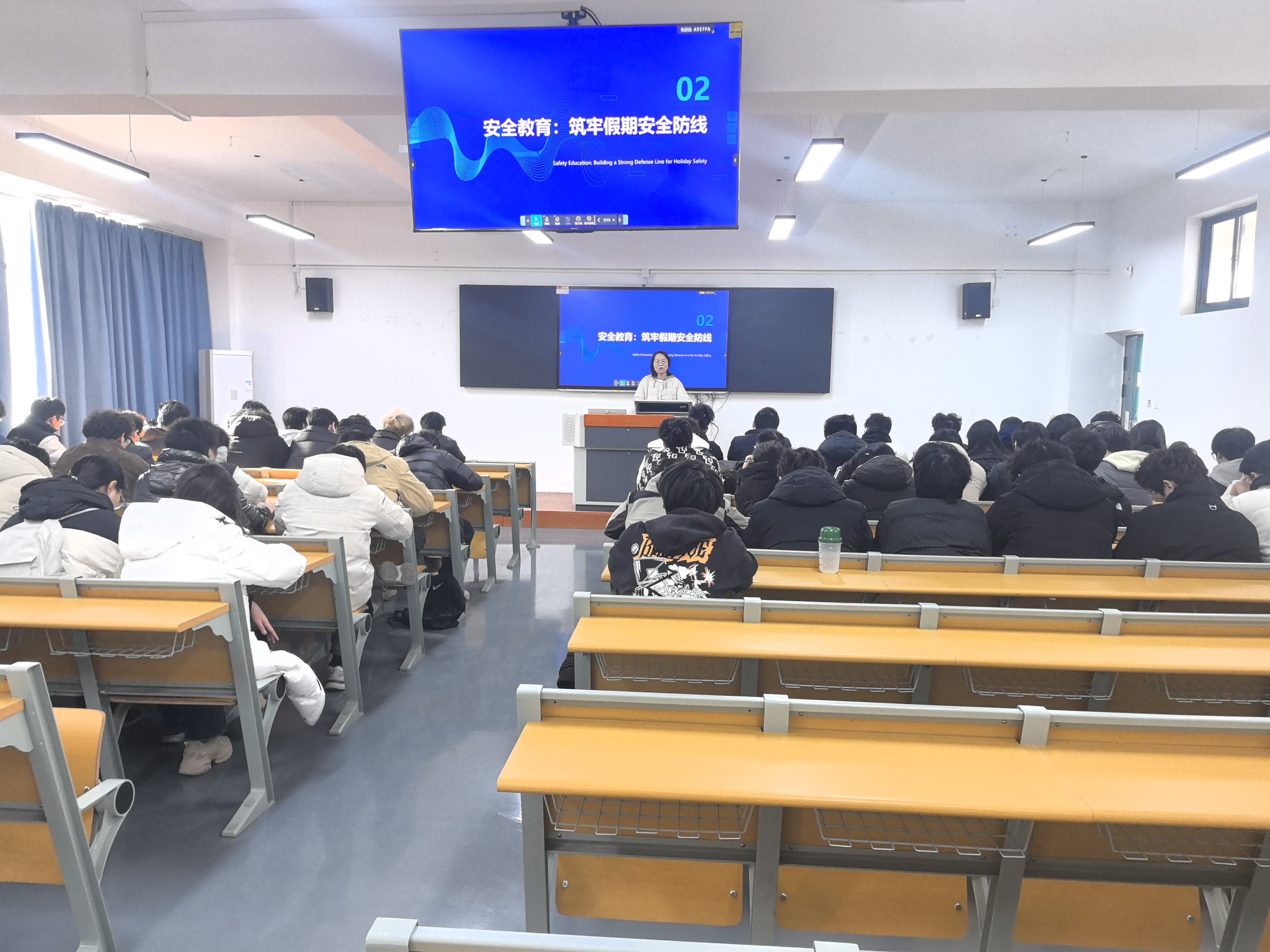 辅导员与班主任随后就假期离校安全事项进行了重点强调,围绕“离校前—旅途中—居家期”三个阶段提出具体要求。在离校准备阶段,学生需提前报备行程、妥善保管贵重物品、全面检查宿舍水电及门窗安全;旅途过程中,应严格遵守交通规则、选择正规交通工具、保持通讯畅通并注意人身与财物防护;居家期间则要规范使用电器明火、主动远离危险场所、自觉抵制各类违法违规活动,旨在引导学生牢固树立“安全第一”意识,筑牢假期安全防线,切实保障每位学生度过一个平安、充实、健康的假期。