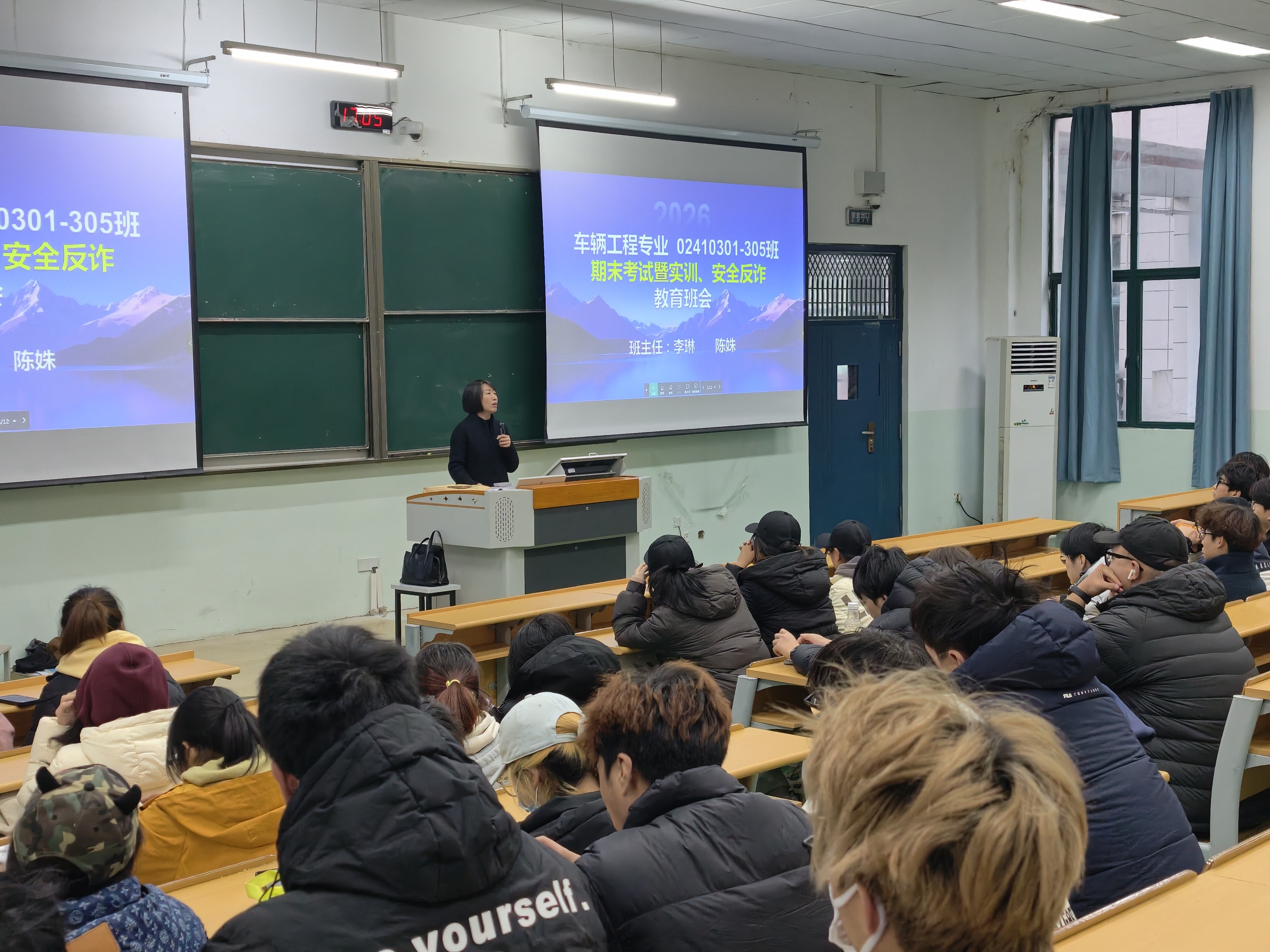 为进一步强化学生诚信考试意识,筑牢假期安全防线,近日,机电工程与自动化学院各班级班主任联动全体辅导员,分层分类线上线下召开期末主题班会、年级会,围绕诚信考试、假期离校安全、反诈防骗等核心内容,为全院学生送上一堂全方位的“期末安全诚信课”。