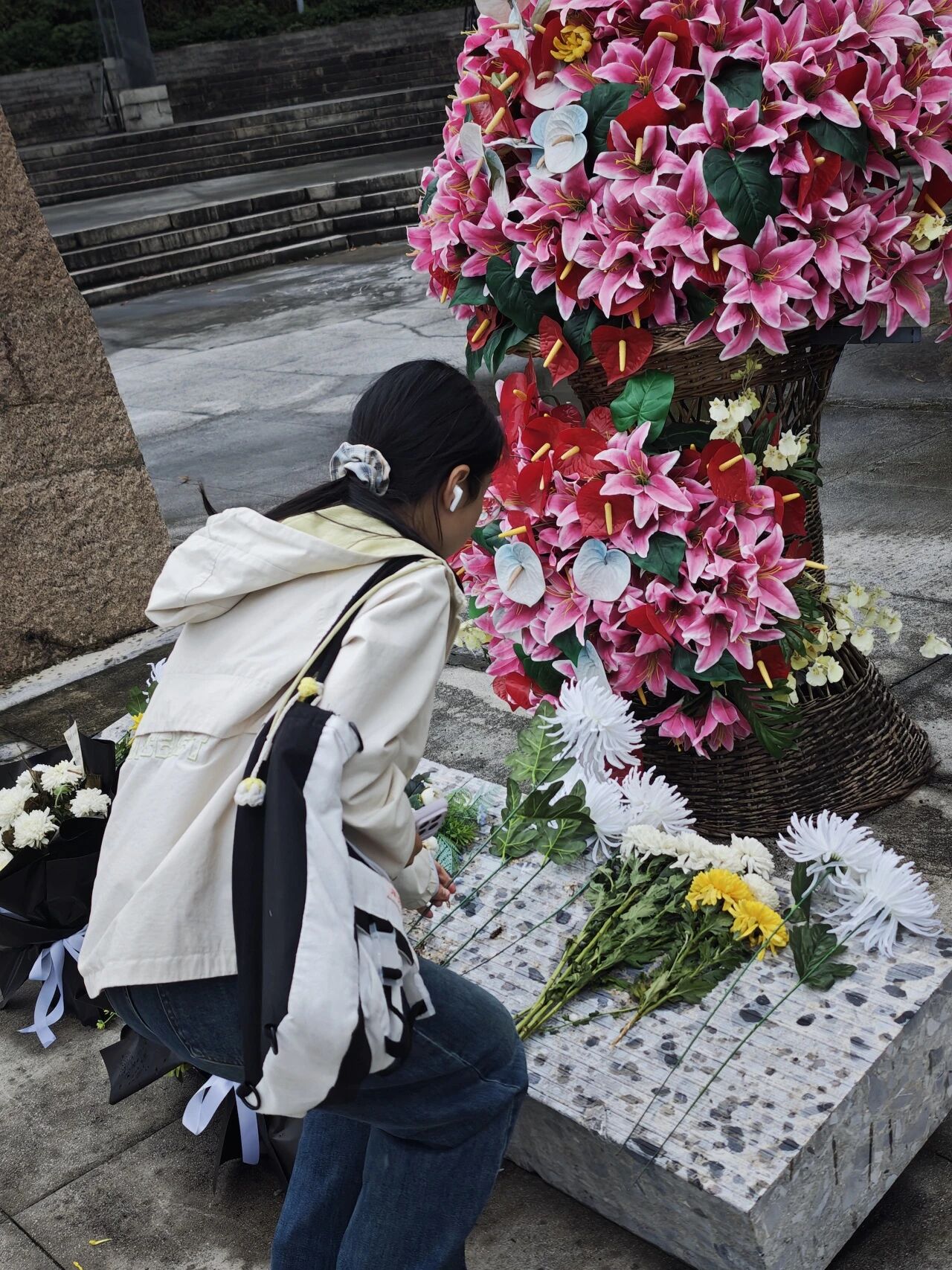 刚踏入纪念馆,庄严肃穆的氛围便扑面而来。古朴庄重的“精忠报国”牌坊静静矗立,无声诉说着对先烈的哀思,也让同学们不自觉放慢了脚步、放轻了声音。在纪念碑前,大家整齐列队,低头默哀,用最真挚的方式向那些为国家独立、民族解放和人民幸福英勇献身的航空烈士们致敬。