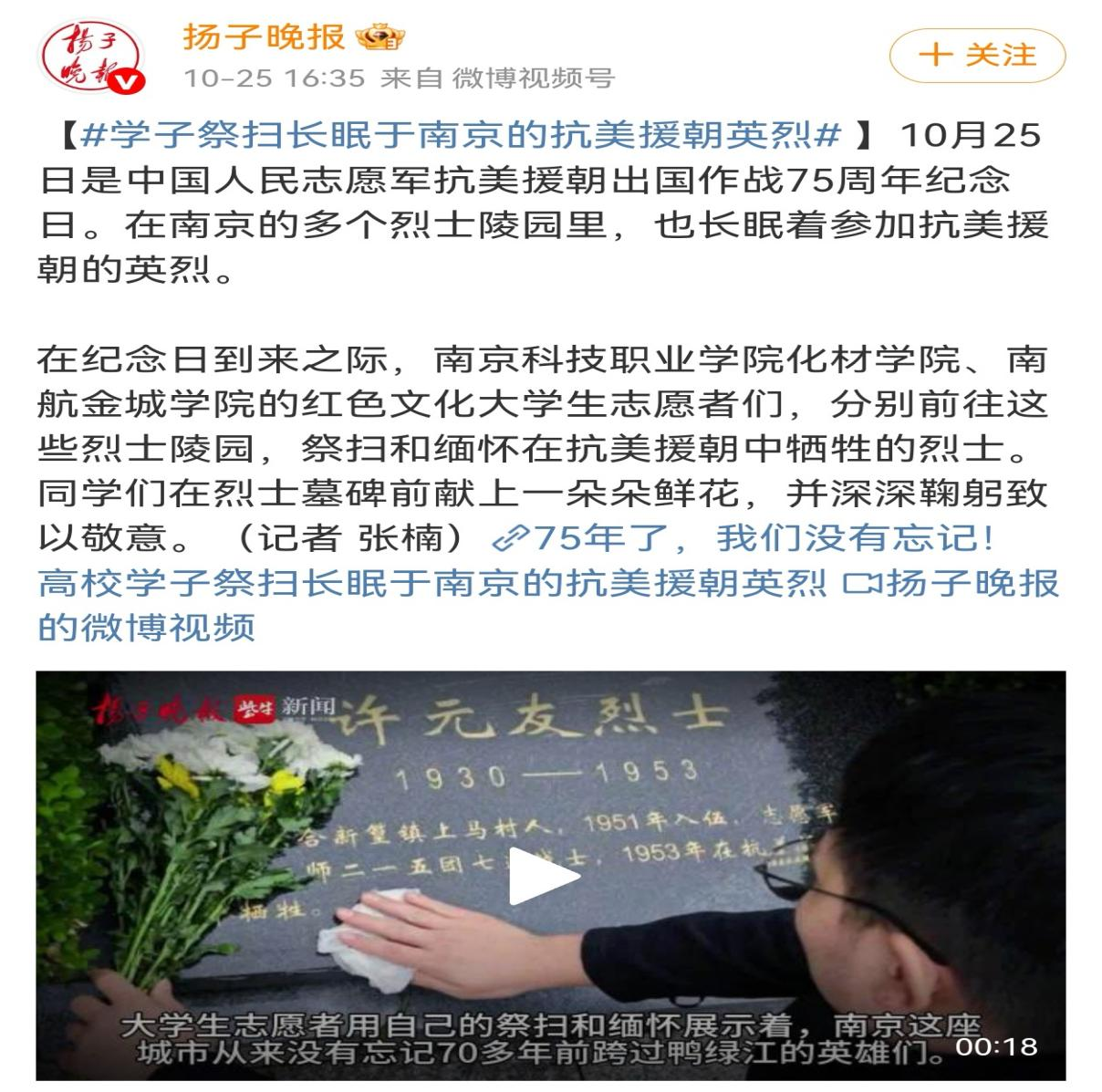 当青春的脚步踏上先烈曾奋斗的土地,当赤诚的心意化作缅怀的行动,沉睡的红色记忆便有了新的温度。10月25日,值此中国人民志愿军抗美援朝出国作战75周年纪念日,南京航空航天金城学院红宣会的志愿者们,带着精心整理的烈士家书与历史档案,走进陵园。他们用生动的讲述还原硝烟岁月,用行动递信仰力量,更以庄重的祭扫仪式守护每一处红色地标。这份用行动书写的缅怀,让英雄精神跨越时空,成为激励更多人的青春火炬。