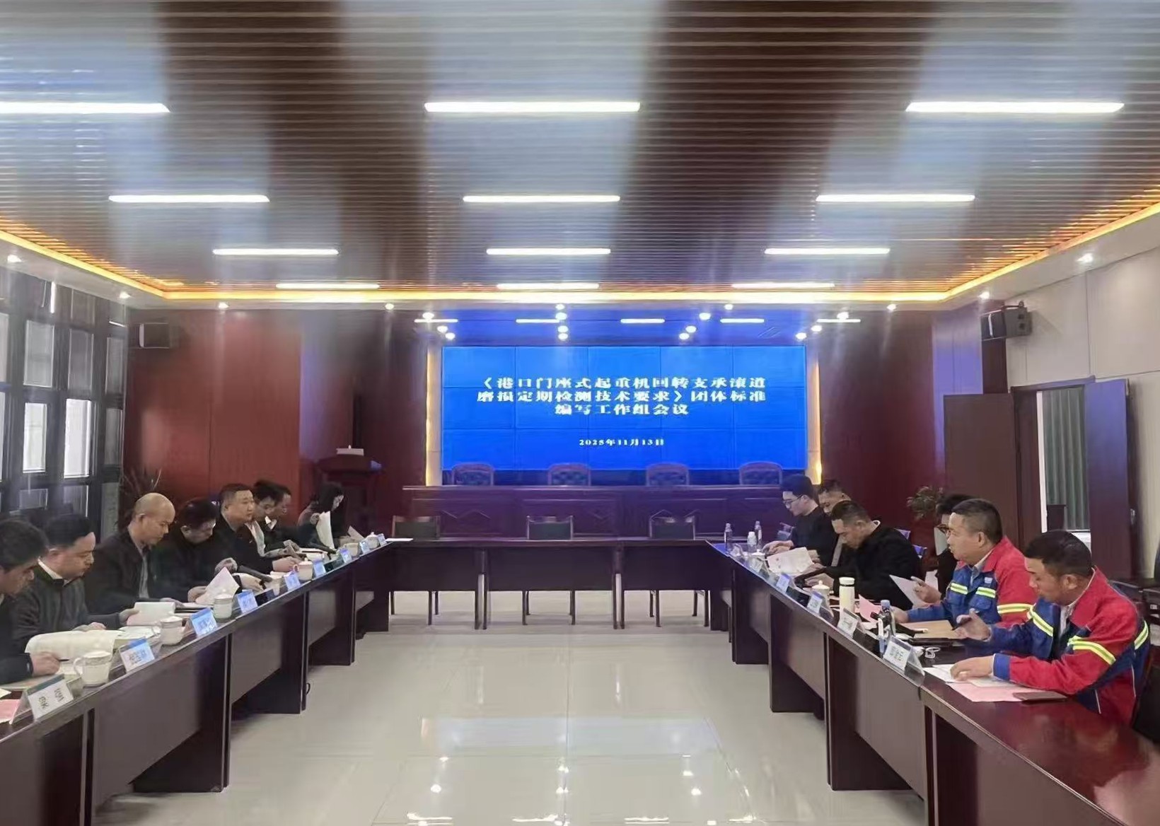工作组会议期间,与会专家重点围绕标准草案的技术结构、核心检测方法及关键判定准则展开深入讨论。代表们对标准中的范围界定、术语定义、测量原理以及系统构成等核心章节进行了细致审议。草案明确规定了港口门座式起重机回转支承滚道磨损的定期检测要求,具体涵盖了轴向与径向游隙的测量阈值、润滑脂状态的监测指标以及推荐的定期检测周期。多家单位代表对摇摆试验方法的具体实施、传感器选型标准等操作性强的条款提出了建设性优化建议,力求确保最终形成的标准既具备技术前瞻性,又贴合现场应用实际,具备良好的可操作性。