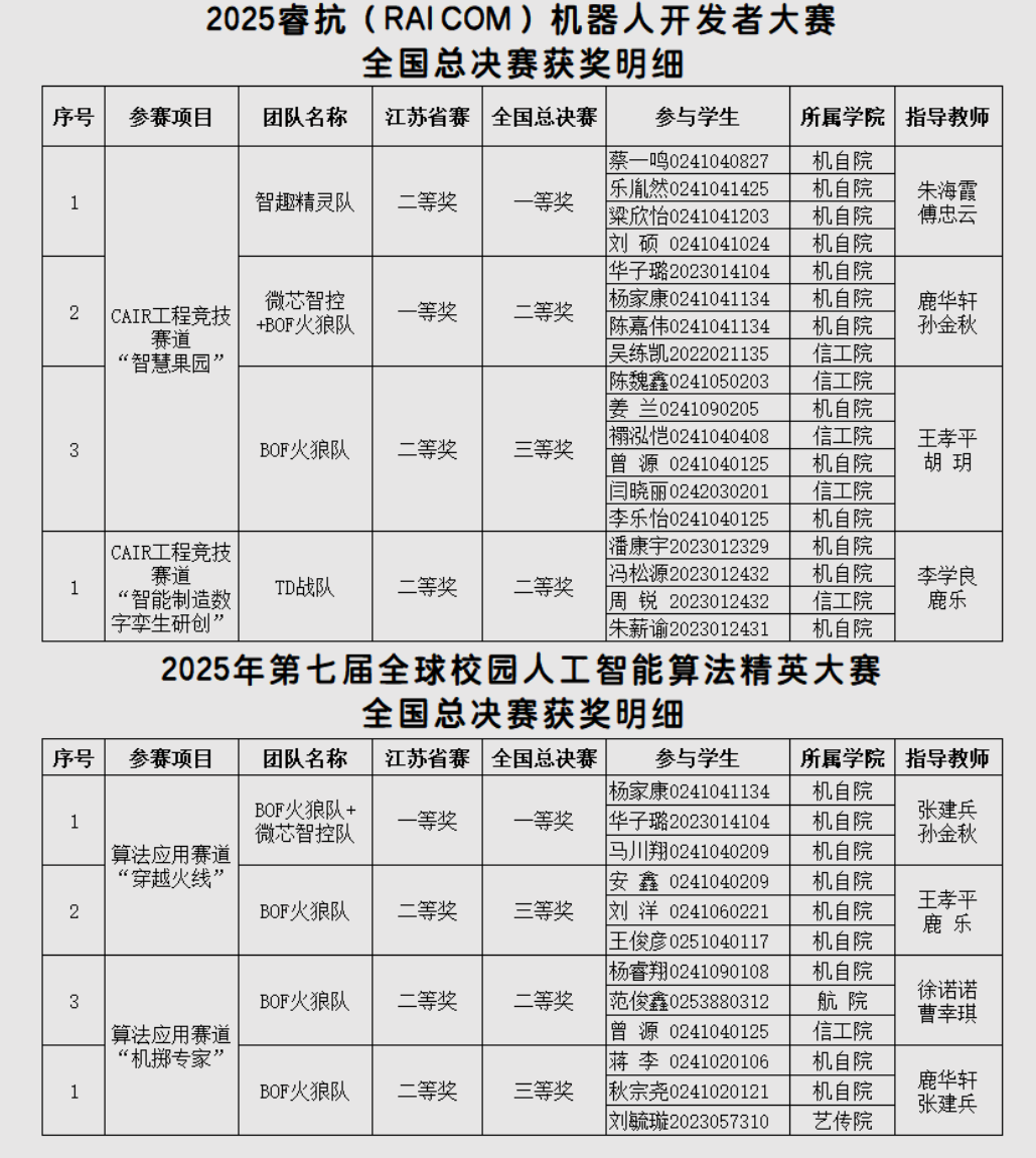 近日,我校学子再次在教育部高校白名单赛事:睿抗(RAICOM)机器人开发者大赛全国总决赛与全球校园人工智能算法精英大赛全国总决赛中接连发力,凭借扎实的专业功底与创新实践能力,斩获多项大奖,充分展现了学校创新创业教育的丰硕成果。