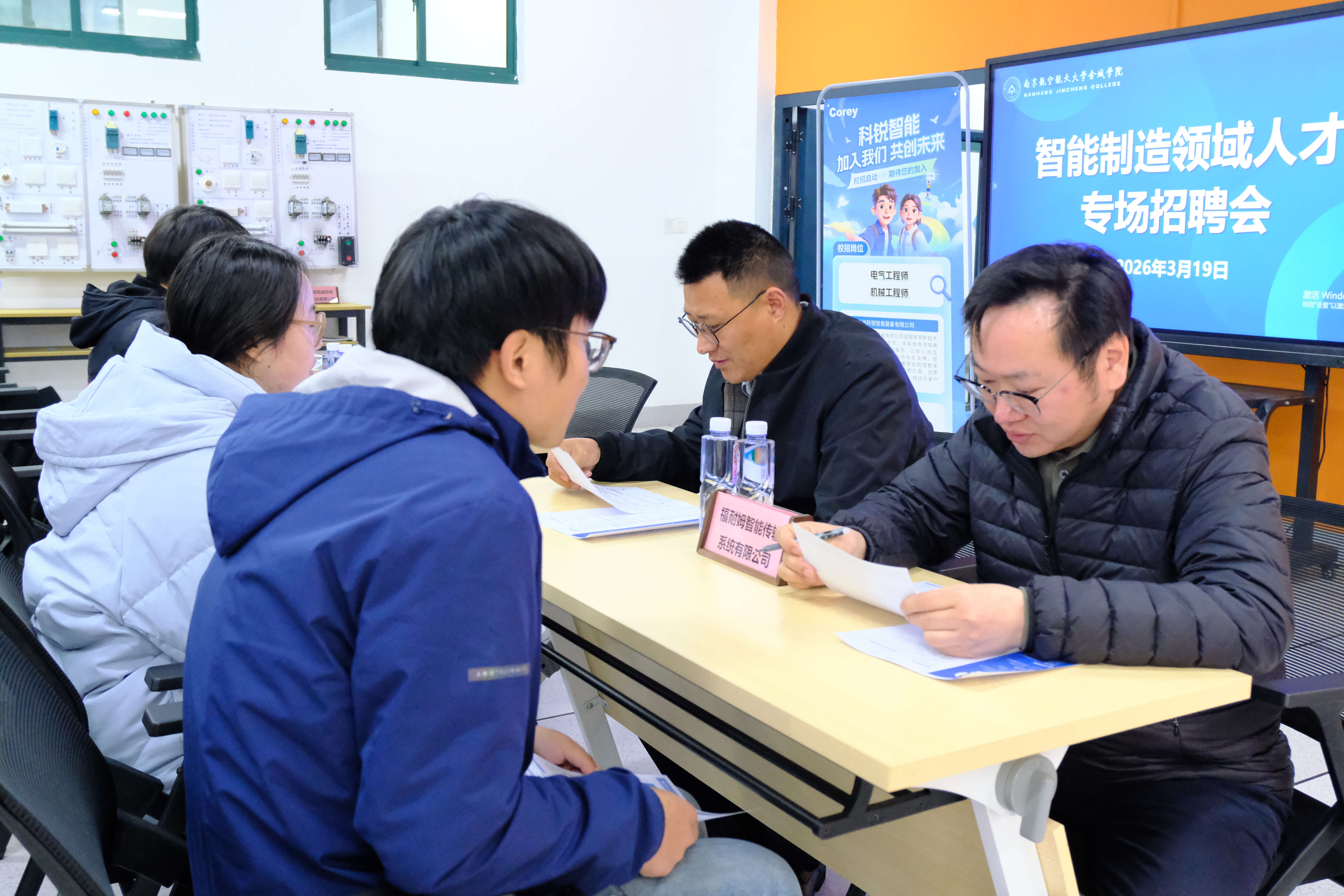 为精准对接智能制造产业人才需求,构建校企协同育人新生态,2026 年 3 月 19 日,南京航空航天大学金城学院绿智制造产业学院成功举办智能制造人才需求与培养校企对接会。苏州科锐智能装备有限公司、福耐姆智能传输系统(苏州)有限公司、苏州泽锐自动化设备科技有限公司智能制造领域优质企业负责人到校交流,共谋产教融合新篇章。