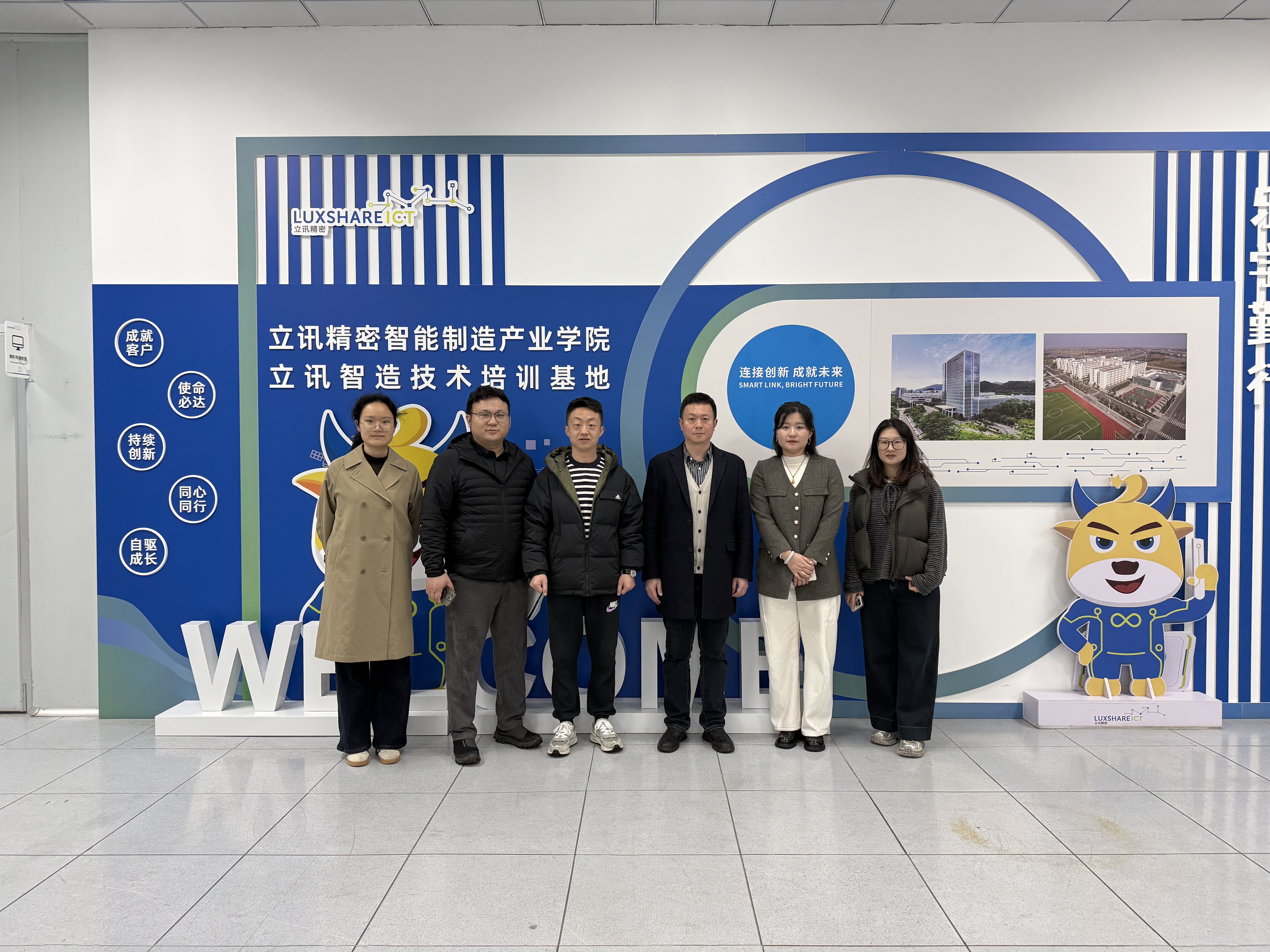 立讯精密深耕电子信息、智能制造领域,专注于高端精密制造、电子元器件研发生产、智能装备集成等核心业务,技术实力雄厚、产业布局前沿。在企业工作人员陪同下,学院一行实地参观立讯精密智能制造产业学院,先后走进组装调试实训教室、电控实训教室、视觉实训室,详细了解实训设备配置、教学流程、岗位技能训练标准与人才培养体系,双方就实习管理、职业发展、安全保障、人才共育等事宜深入沟通,进一步明确校企协同培养机制。此外,还实地参观了常熟市现代产业技能实训中心,详细了解中心产教融合、技能实训及人才培养等相关情况。